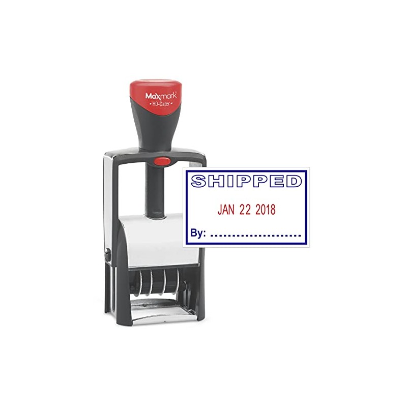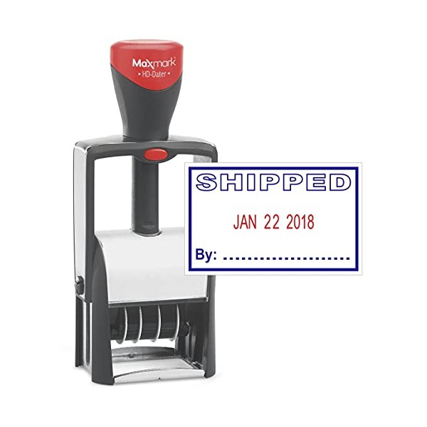 Heavy Duty Date Stamp with"Shipped" Self Inking Stamp - 2 Color Blue/Red Ink