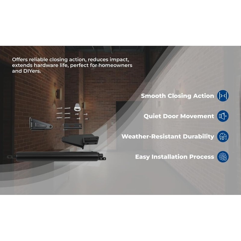 Heavy Duty Door Closer for Storm & Screen Doors – Pneumatic Automatic Closure – Weather-Resistant – Black – Fits Wood & Metal – Easy Install – Kiavetta Brand