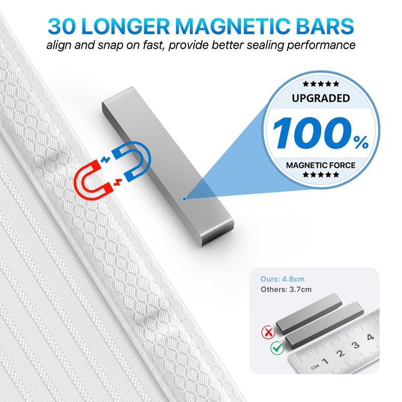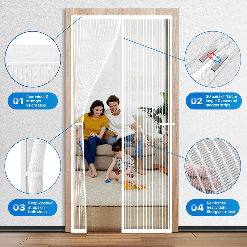 - 【Hands-Free Entry & Fast Closing】Built-in 30 pairs of well-aligned magnetic bars, when someone passes through, the Screen Door Mesh will self-sealing in seconds. 6 gravity bars on the bottom keep the Door Screen windproof and stable, great for your front doors, back doors, entry doors, patios, porches and sliding doors.