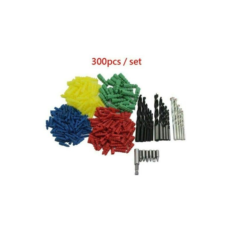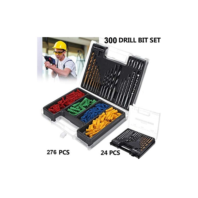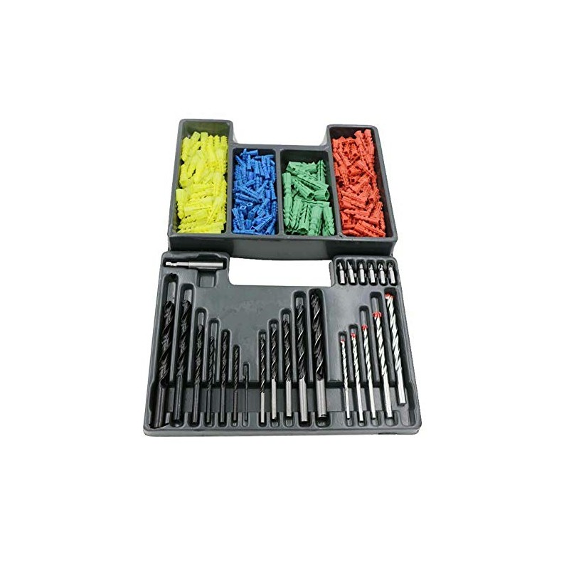 Heavy Duty Drill Bits & Wall Plug Set 300 Pieces Multi-Surface Bit Set with Box