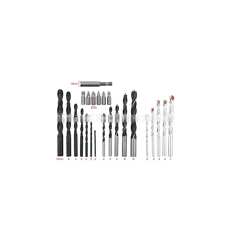 - Includes 7 x metal drills (2-10mm), 5 x wood drills (4-10mm), 5 x masonry drills (4-10mm)