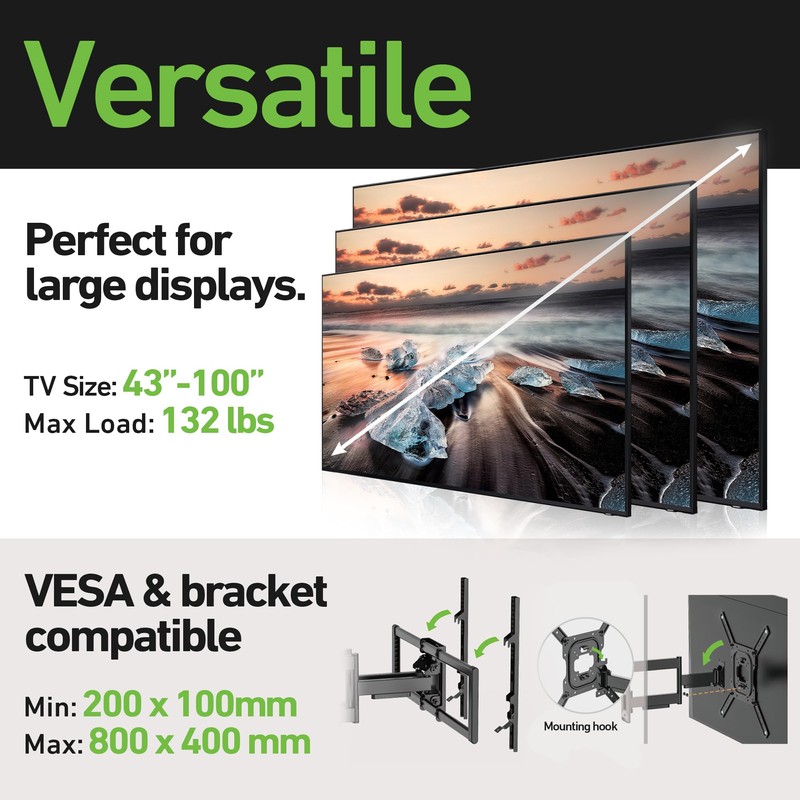- SIZE: Fits TV sizes from 37" up to a massive 102"