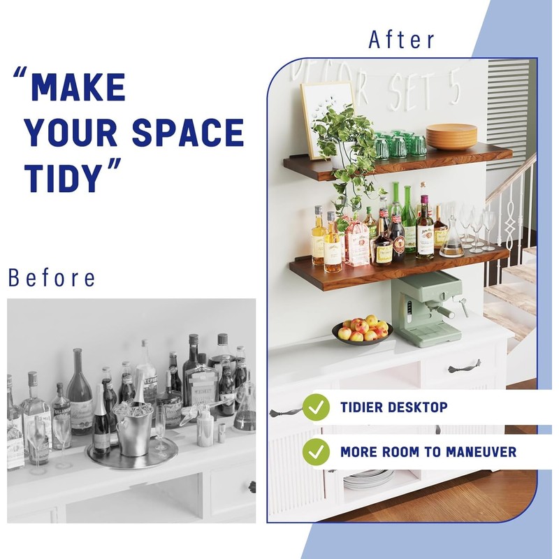 - 【Hidden & Countersunk Design】With a height of just 1.6 inches, the bracket can be easily hidden between the wall and shelf. It's designed for both upward & downward use, while the countersunk feature guarantees smooth drilling and invisible screws.
