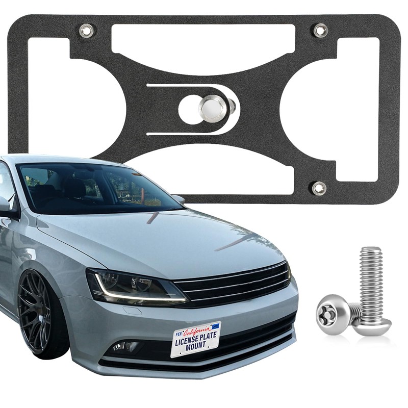 Heavy Duty Front License Plate Frame Compatible with Volkswagen Jetta/GLI 2019-2023, No Drill Tow Hook Mount, Anti-Theft License Plate Holders Bracket, Rust-Proof, Rattle Proof Car Accessories
