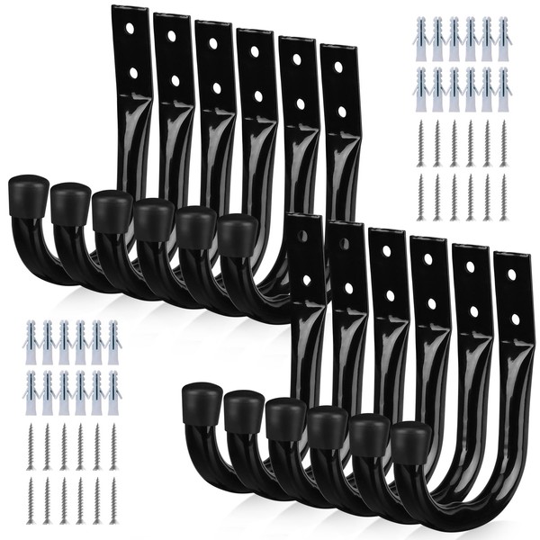 - COMPLETE PACKAGE - This set includes 12 large black metal garage hooks, 24 wall anchors, and 24 screws, providing everything you need for a complete organization system. Perfect for both indoor and outdoor use, they help you declutter and create more space in your home or yard