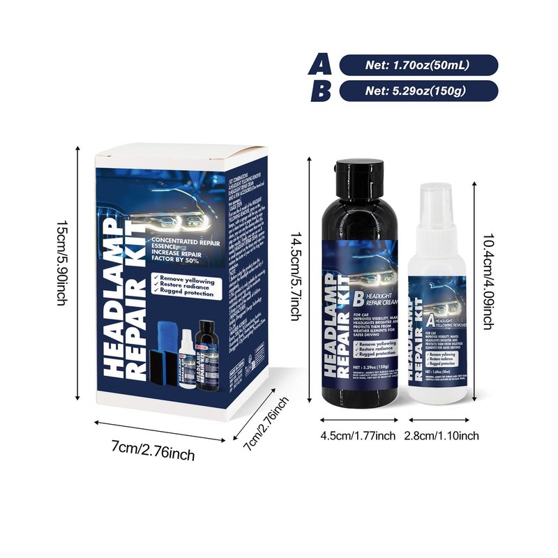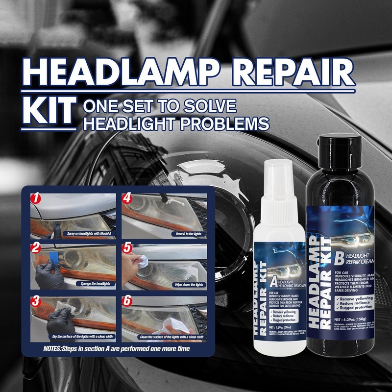 • Ideal Protection: By utilizing a repair cream, our headlight restoration kit creates a protective layer that protects your headlights from harmful UV damage, effectively extending their life and keeping them like new for longer