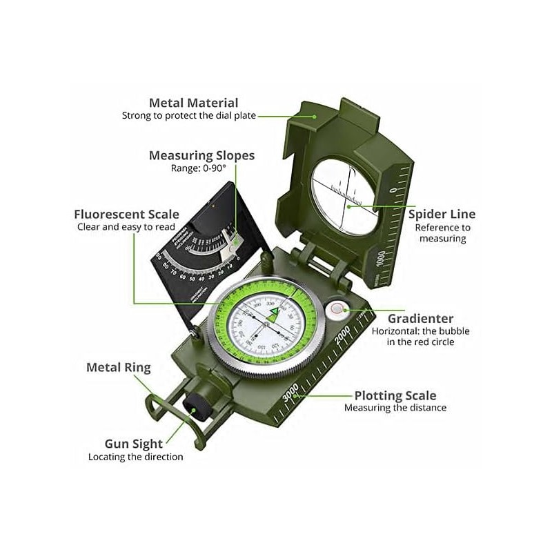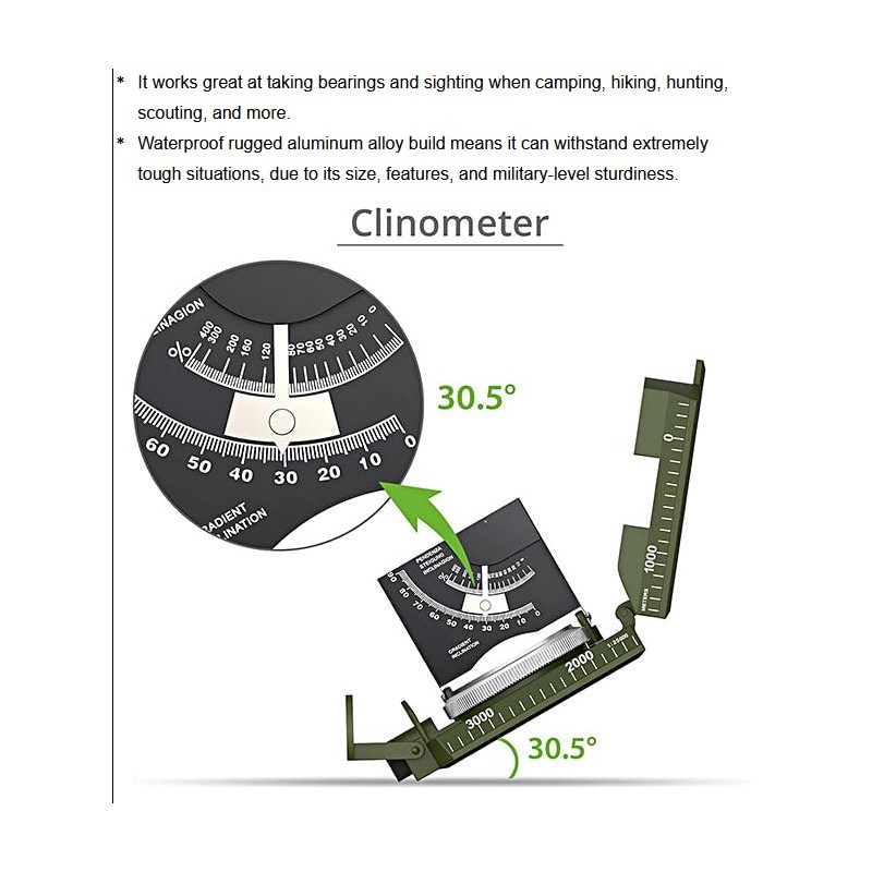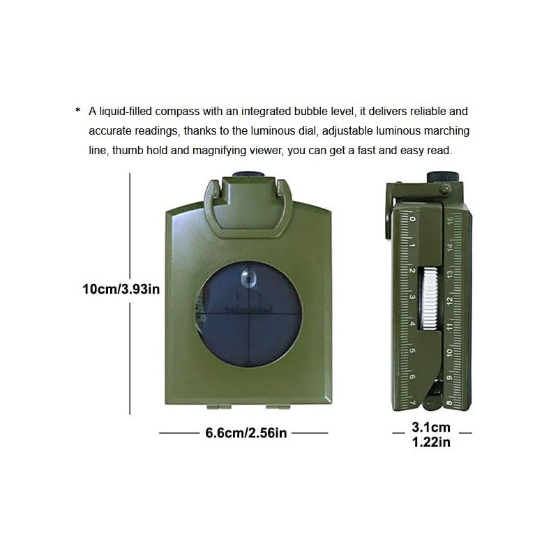 Heavy-Duty High-Precision Inclinometer American Multifunctional Green Compass Professional Military Compass with Sighting Clinometer Suitable