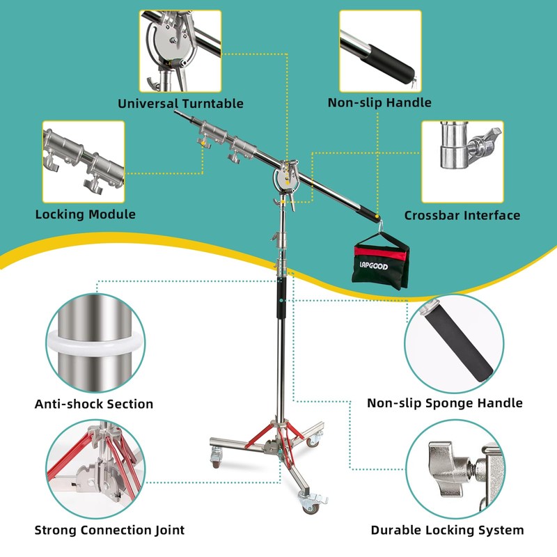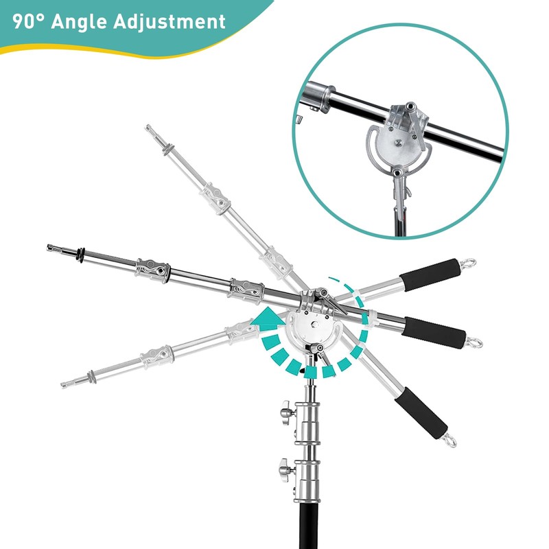 - 【Heavy-Duty Stand& Versatile Function】This photography C-stand made of 100% solid stainless steel, the C-stand with refined design serves long-lasting durability for supporting heavy-duty photographic gears like umbrella, strobe, monolight, reflector, softbox, and camera and flash and more.