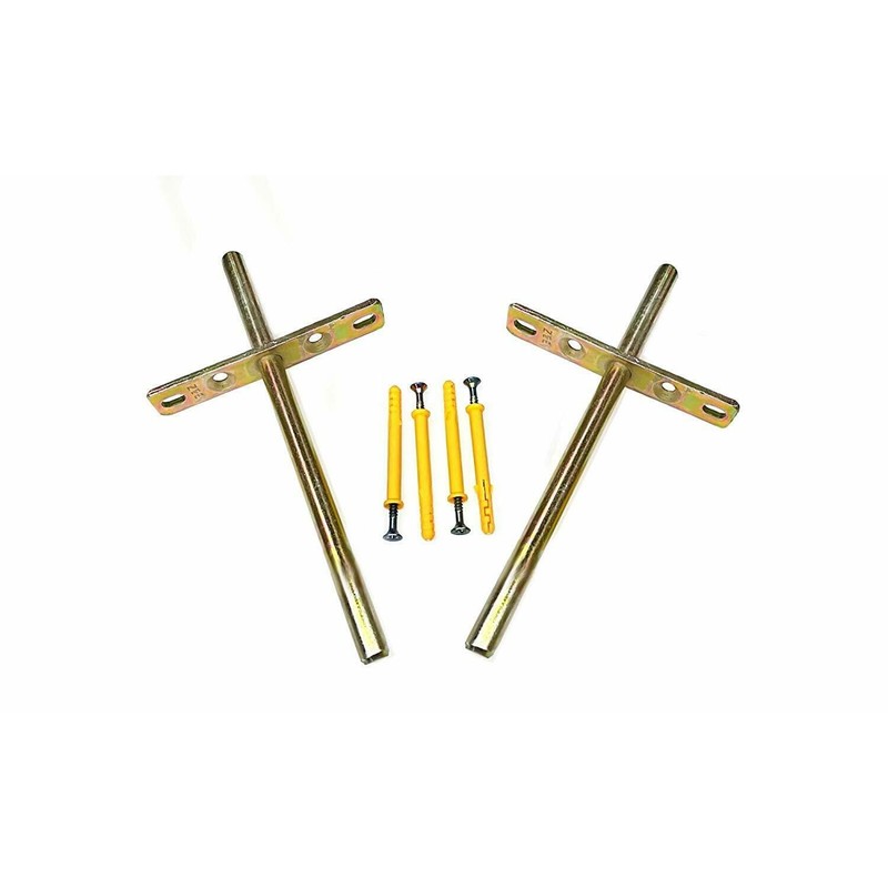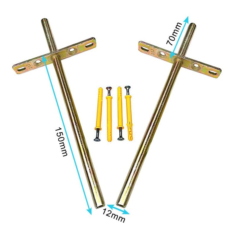 Heavy Duty Floating Shelf Brackets Invisible and Concealed Cross type, for most shelf types including Oak Mantle, Scaffold Boards, for Unbeatable Strength 150mm Wall insert Side 70mm (Pack of 2 Brackets) Other Size Available: 65mm, 85mm, 115mm, 135mm, 200mm, 250mm, 300mm, 400mm These brackets are designed with a 12mm steel rod to sustain heavy loads. The inherent feature of part of the rods ending up in the wall provides the shelf with exceptional support, making them unique, heavy-duty, and sturdy. They are Ideal for holding heavy kitchen items, decorative home accessories, books, plants, jars, bottles, shoes, tools, etc. Make maximum use of your space with shelves that fit perfectly and look great in your kitchen, over the fireplace, living room, dining room, bedroom, bathroom, drawing room, laundry room, and garage. The screws are supplied with them They are tremendously easy to fit via the following steps Step 1: Using the central plate on brackets, mark the wall side of the shelves using a level and drill the holes centrally for the shelf insert rods, A 12mm wood drill bit is recommended, and the holes should be no longer than 85% of the shelf depth. Mark the points on the walls using a level and make drill holes for the wall inserts again using a 12mm masonry drill bit. Step 2: Mark the slot of the bracket back plate. Using a chisel and hammer or a router, chisel out up to 6mm on the rear of the shelf. Step 3: Assemble the brackets and insert them in the wall holes and again use a level mark the screw points with a pencil, Drill holes for the screws and screw the brackets into the wall. Once secured place the shelf onto the brackets. You can use putty or silicon to hold these in place if required
