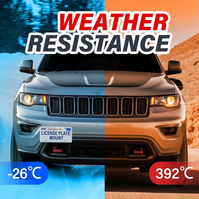 - No Drill Installation: This license plate frame has 4 adjustable mounting locations, allowing you to easily adjust the plate position to avoid blocking air intakes, headlights, or parking sensors. With a quick and hassle - free installation that requires no drilling or vehicle modification, the license plate bracket can be directly mounted to the designated area on the vehicle's front bumper, achieving a perfect installation in just a few minutes.