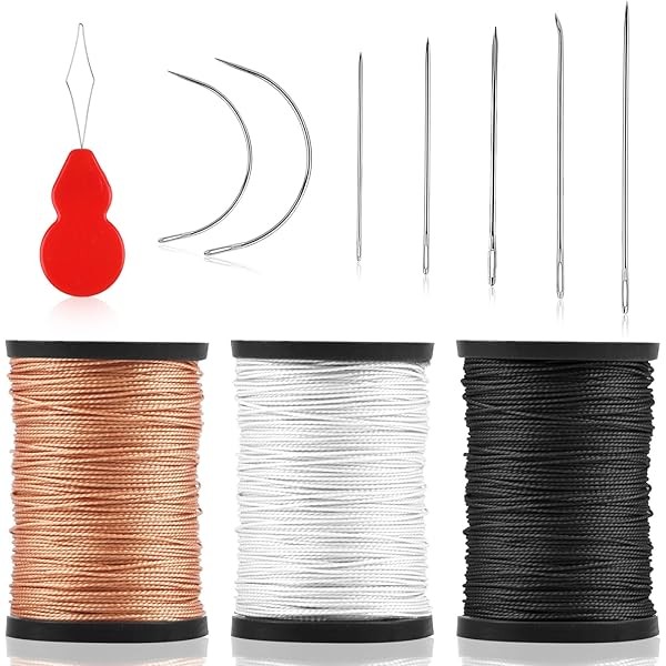 Heavy Duty Nylon Upholstery Sewing Kit - Includes 3 Rolls Thread (73.5yd Each, 3 Colors), 7 Shaped Needles, 1 Threader for Leather, Carpet, Furniture, Shoe