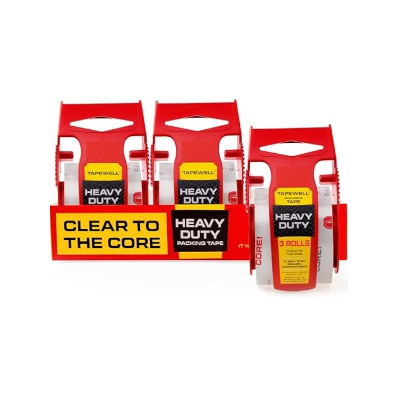 Heavy Duty Packing Tape with Dispenser 1.5" Core - 3 Rolls - Clear Shipping T...