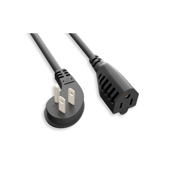 Heavy-Duty Power Cord Extension Flat Plug NEMA 5-15P Low Profile/5-15R 16AWG 13A/125V 3FT