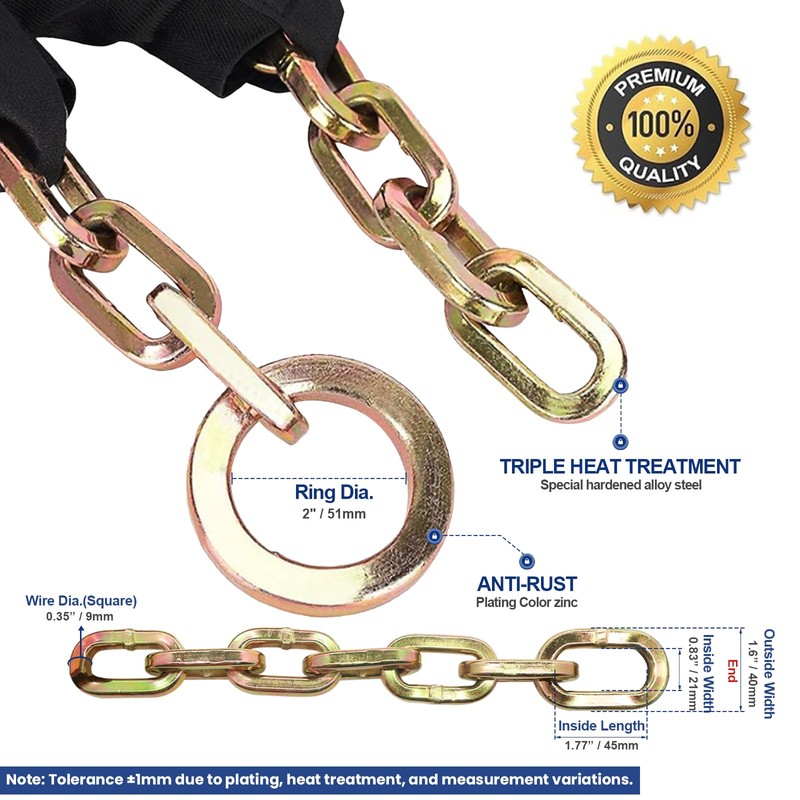 - Premium Heavy Duty Construction: Built with premium case-hardened steel, this 15ft x 3/8in thick chain is designed to resist cutting, sawing, and hammering, ensuring ultimate protection for your valuable equipment.