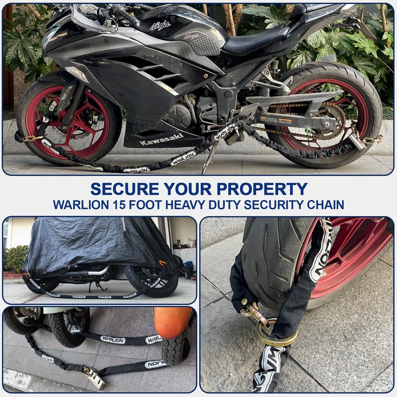 - Heavy-Duty Yet Flexible Design: The 15ft length and 3/8-inch thickness provide maximum coverage without sacrificing portability, making it ideal for securing power generators and 2-wheeled vehicles. Comes with a security chain carry bag for easy storage and transportation.