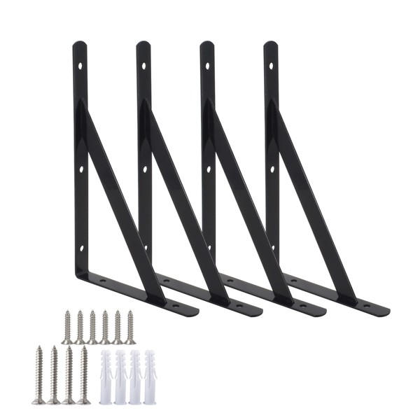 Heavy Duty Shelf Brackets Triangle Shelving Brackets Right Angle Wall Mounted Shelf Supporters Black 12 Inch Set of 4