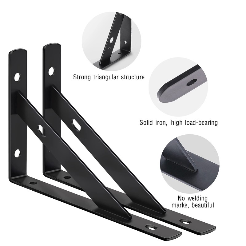- 【Strong Shelf Brackets & Supports】The black brackets are the most sturdy triangular structure, made of premium solid iron to provide high carrying capacity. Our tests have shown that it can withstand a maximum weight of 30KG when mounted on a concrete wall. The surface is smooth and rust-proof and the rounded edges are designed to be hand polished for extra safety. Aslo our shelf Brackets feature 3 Sizes(150*95mm, 200*120mm, 250*160mm) for you to choose the best fit one according to your needs.