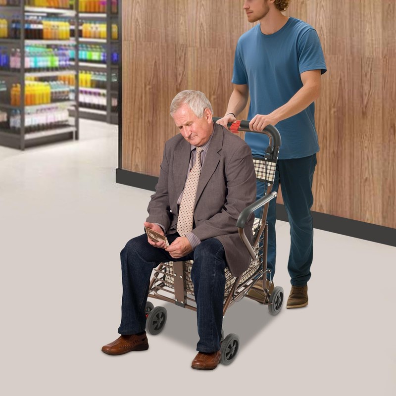 - Multi-functional Storage Space: It is equipped with a large capacity shopping basket at the bottom, making it convenient for the elderly to shop or carry personal items. The backrest is also equipped with an additional pocket for storing small items such as phones, change, and keys.