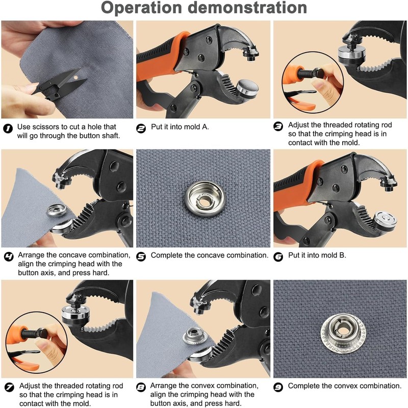 - ✋ Easy to Use – Even for Beginners With a clearly marked hand tool and intuitive operation, this kit simplifies snap fastener installation. Great for DIYers, boat owners, and canvas repair jobs.