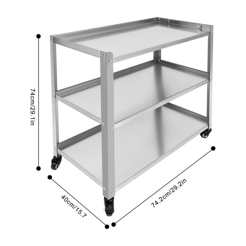- Function: Three-layer stainless steel trolley helps you sort kitchenware or tableware, and the open design allows you to easily pick up and organize items. The convenient handle allows you to push the product easily. is suitable for laboratories, beauty salons, and even canteens, hotels, office building kitchens, restaurants, homes, clubs, bars, cafes, and more.