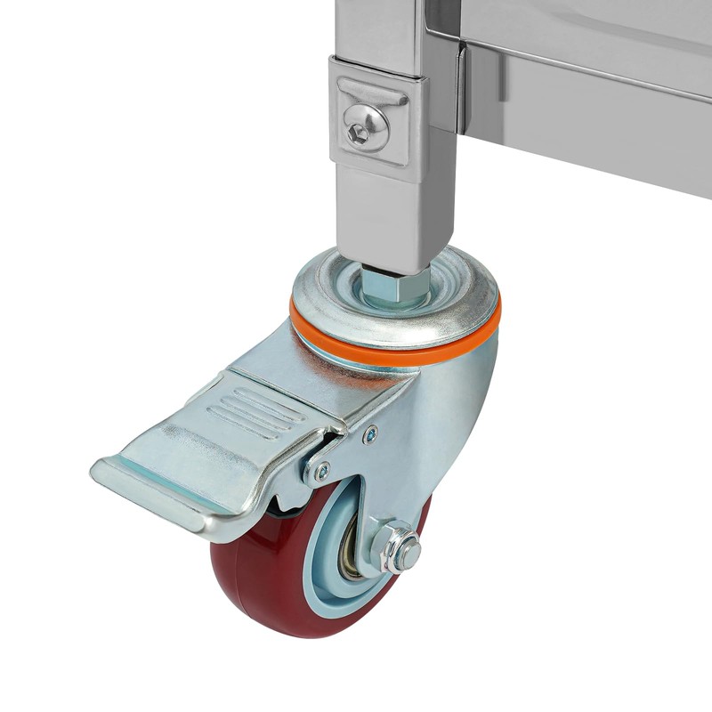 Stainless steel wheeled service vehicle is suitable for transporting goods and storing equipment in any environment. It can be a good helper for storing and transporting goods in enterprises, hotels and homes. Stainless steel trolleys are silent casters, which can help you avoid noise during use. Non-marking universal casters can rotate 360 degrees, with flexible steering and braking casters to help complete transportation quickly and easily.