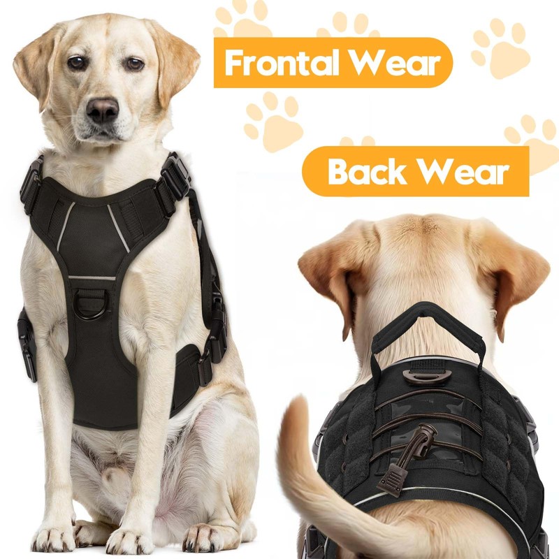 Heavy-Duty Tactical Dog Harness for Large Dogs, No Pull Adjustable Reflective Pet Vest with Molle System, K9 Military-Grade Control for Service Training, Outdoor & 10+ Breeds, Black, Small