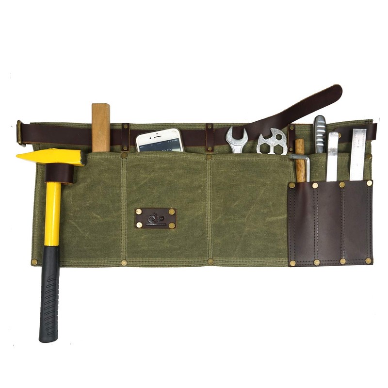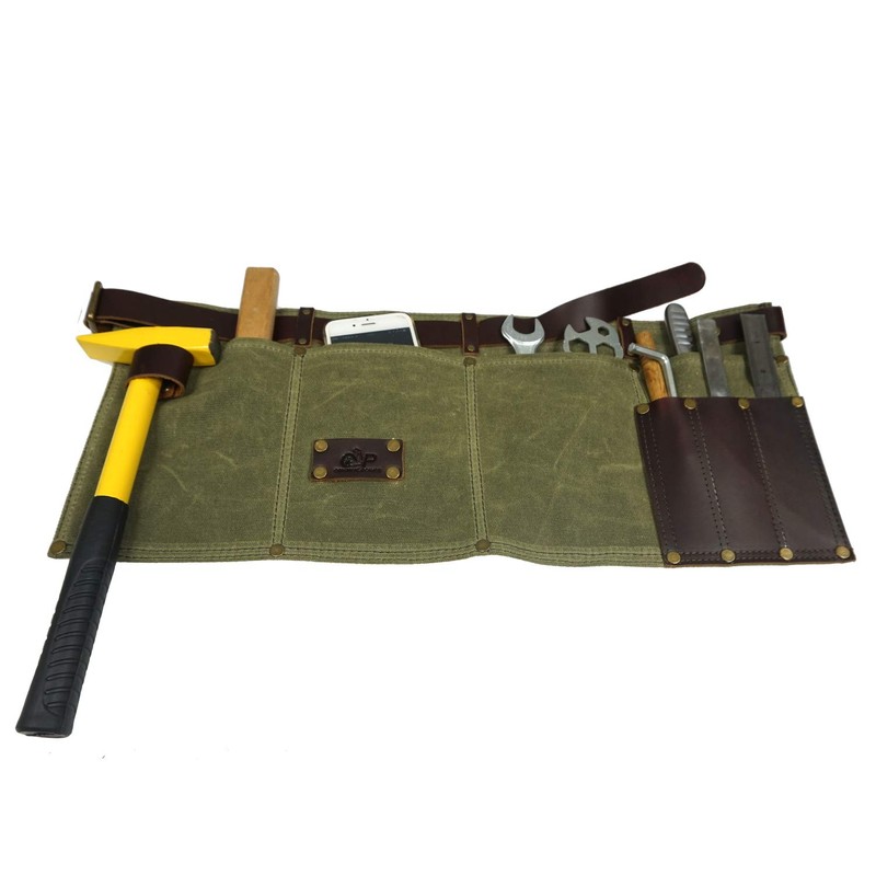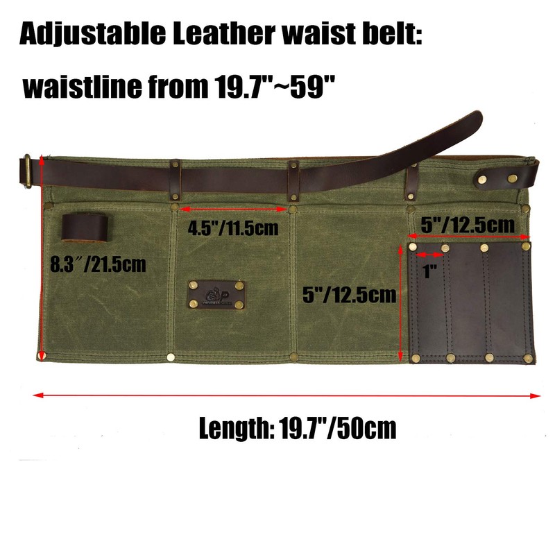 - 🔸Material: Made of resistant & rugged 16 oz waxed canvas, genuine leather waist belt apron, sturdy brass handware, and double stitched tool pockets for strength and structure.