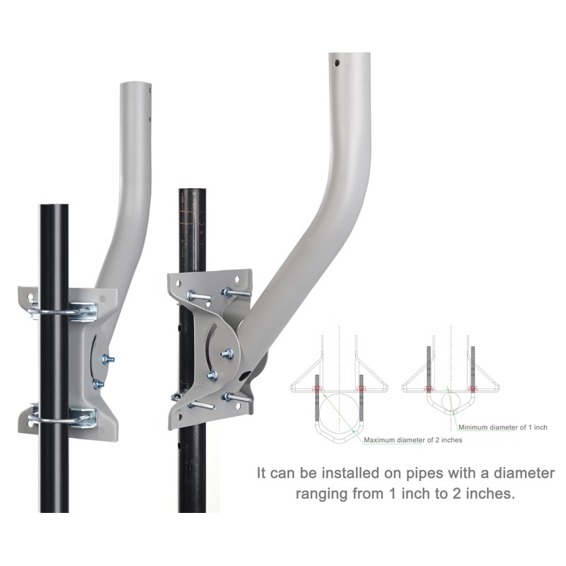 - Two Installation Methods - This antenna mount pole bracket can be installed on a pole or wall-mounted. Using the V jam brackets with U-bolt, the clamp kit can securely hold pipes and antenna tight in place, will not budge in the wind. It can be installed on pipes with a diameter ranging from 1 inch to 2 inches.