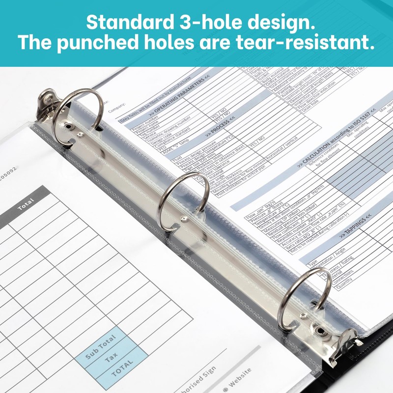 - Standard 3-Hole Fit - Designed for perfect compatibility with standard 3-ring binders, these letter-size protectors ensure a secure and organized fit for your documents, making them ideal for school, office, and home use.