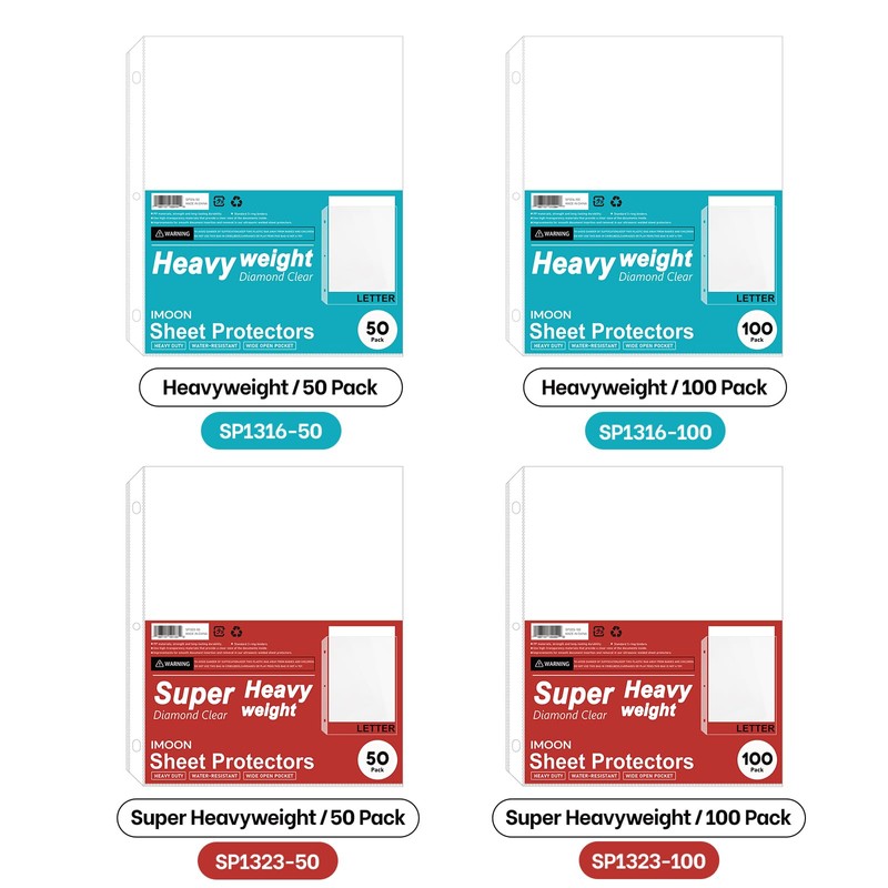 Built to last, these sheet protectors are made from tear-resistant material that can withstand frequent handling. Choose between Heavyweight for everyday use or Super Heavyweight for maximum protection.