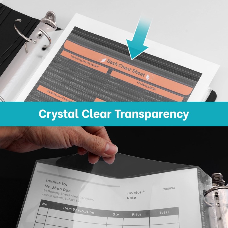 Enjoy exceptional clarity with our high-quality polypropylene material. The Diamond Clear design ensures your documents, photos, and presentations are sharp, vibrant, and easy to read, making it perfect for professional use and archival purposes.