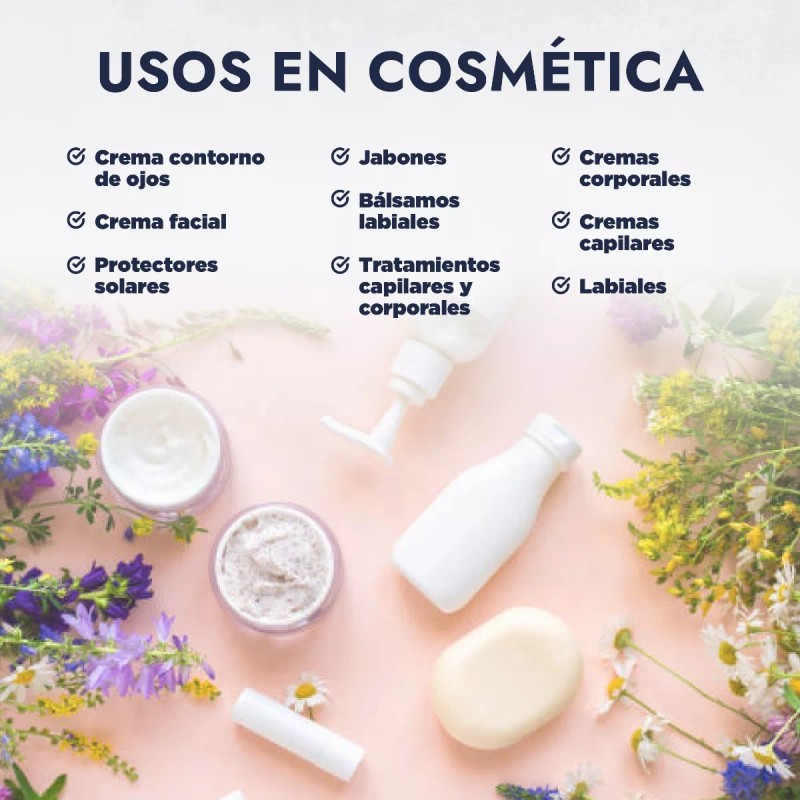 Se funde, aproximadamente, a unos 35ºC y dependiendo de los usos que quieras darle deberás de incorporar una cantidad u otra. La dosis recomendada oscila entre el 1 y el 20%. Por ejemplo, para productos capilares, se aconseja agregar de un 1 al 4%; en cosméticos faciales, de 1 al 5%; y en productos corporales, entre el 1 y el 20%.