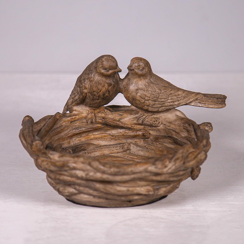 - DESIGN FEATURES: Intricately detailed nest-shaped bowl adorned with two loving birds perched on the rim, creating a charming focal point