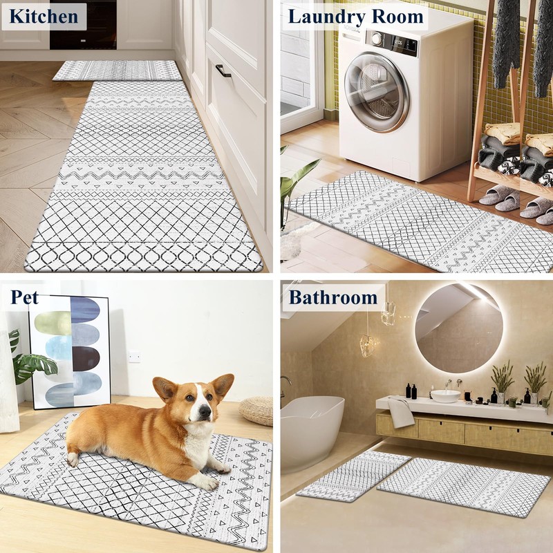 • Multiple Uses Anti Fatigue Kitchen Mats for Floor 2 Pieces Set - Thick cushioned anti fatigue kitchen mat rug and runner set also suitable as standing desk mat, office mat,kitchen runner mat, doormat, bedroom rug ,bathroom rug mat, kid's room rug or other anti-fatigue mat application, provides a warm accent for the home or kitchen.