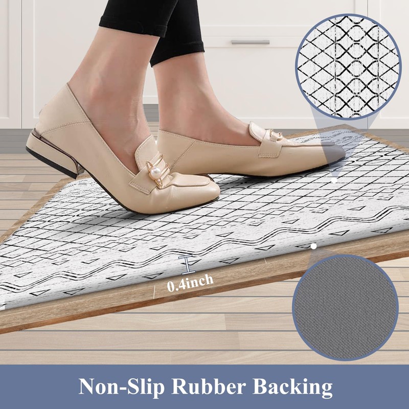 • Non-Skid Antifatigue Kitchen Floor Mat Set - Cushioned anti fatigue kitchen mats and runner sets come with non slip backing and unique beveled edges,help prevent slipping or tripping,can be used for multiple surfaces(wood, ceramic, marble, etc), very comfortable foam construction.