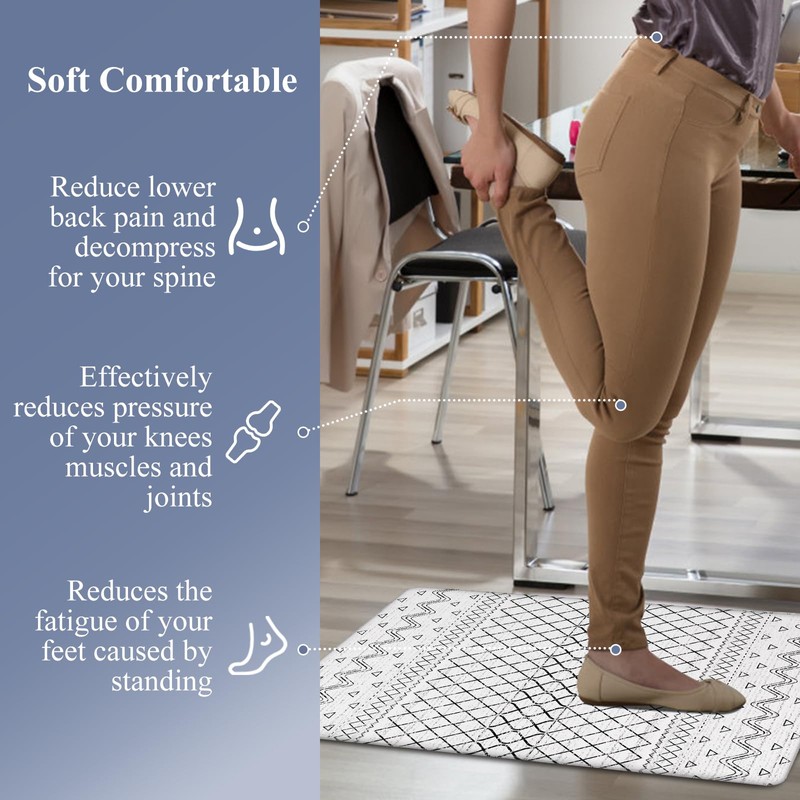 • Anti-fatigue Comfort Standing Mat- 0.4 Inch thicker cushioned high density PVC foam anti fatigue kitchen rugs sets 2 piece, provide ample support for people's foot and knees over long periods of standing, perfect for domestic or commercial kitchens.