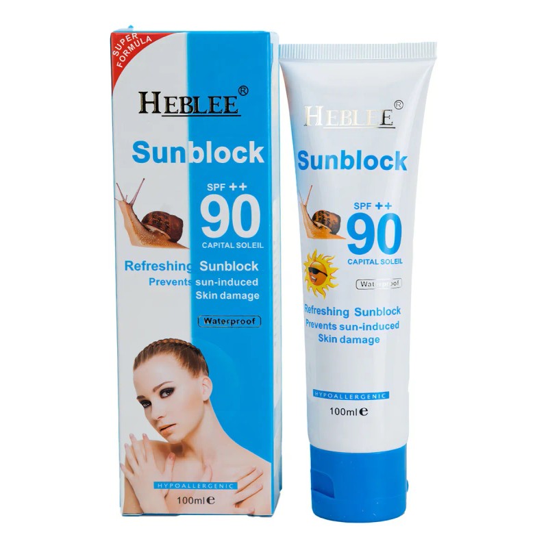 Heblee Protector Solar Con Baba De Caracol SPF 90 Waterproof UVAUVB Frmula Suave Hipoalargnico 100ml