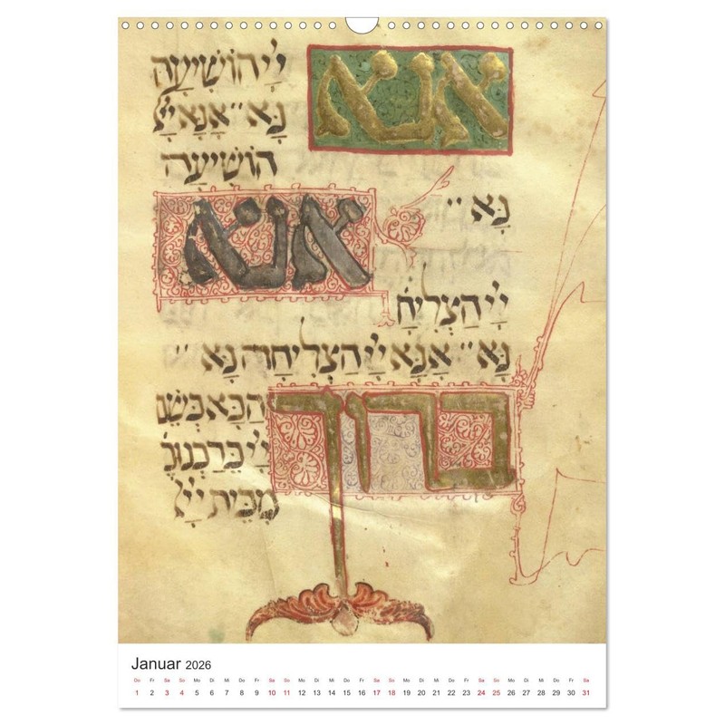 Hebrew Illuminations and Manuscripts (Wall Calendar 2026 DIN A3 High), CALVENDO Monthly Calendar: Highlights of Jewish Book Art from the Middle Ages. (CALVENDO Art)