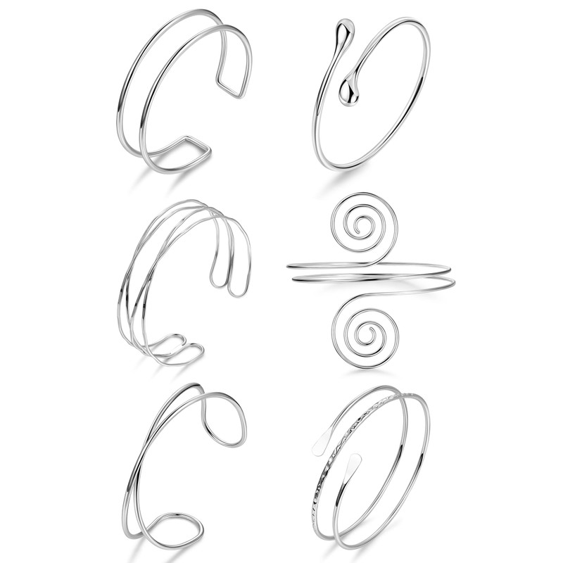 • MINIMALIST DESIGN Discover the Hebterrka upper bangle set with six unique designs, including layered and spiral upper bangles. These bracelets feature a classic yet stylish look that is perfect for any occasion. Whether in everyday life or on special occasions, these bracelets offer endless combination possibilities for your