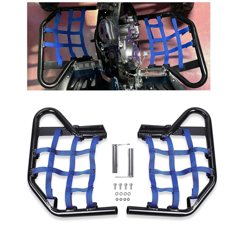 HECASA Side Steps Nerf Bars Foot Guard Pegs Compatible with Yamaha Raptor 700 YFM 700 YFM700R (Blue Webbing Nets)