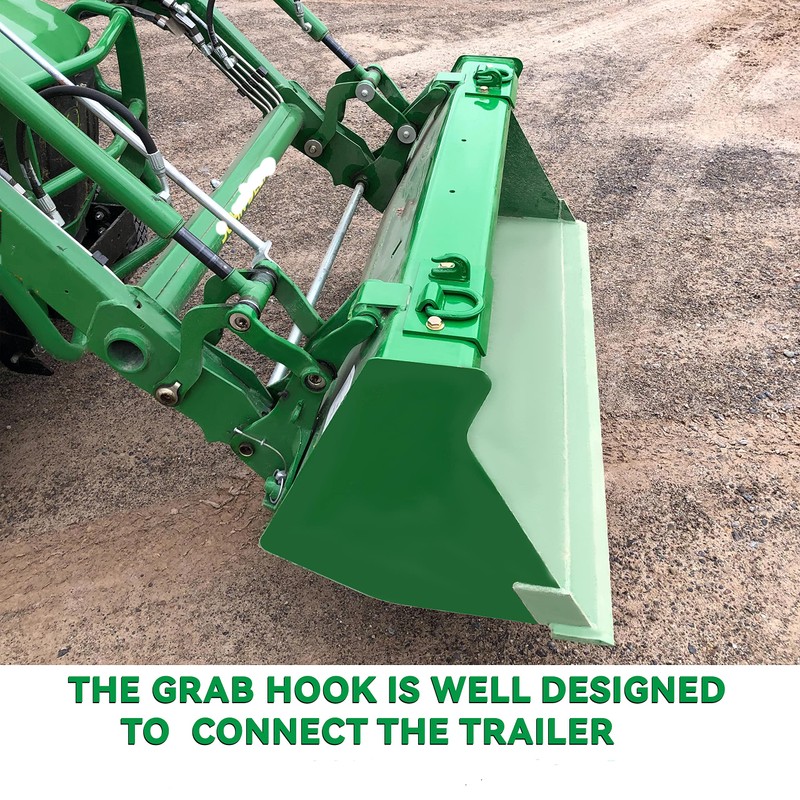 - The grab hook is well designed to perfectly connect the trailer to the John Deere tractor bucket. High quality green powder coated provides security for your transportation. It remains safe even in the harshest conditions.
