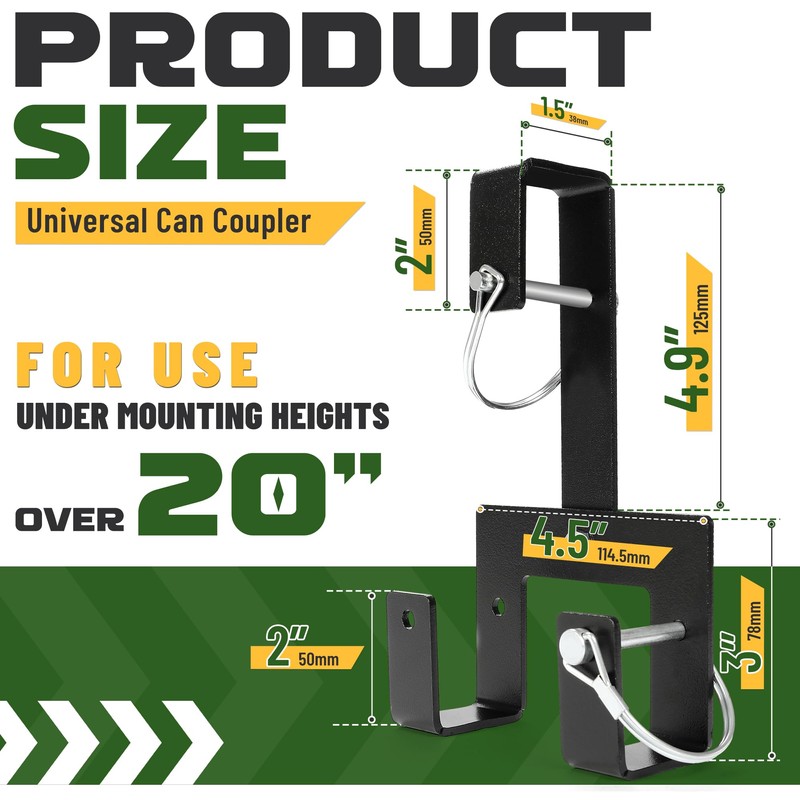 - Universal Fit: It is a universal can coupler that can be used on most sizes and shapes of garbage hook hitches. However, it is more recommended for use on steep driveways or installations over 20 inches.