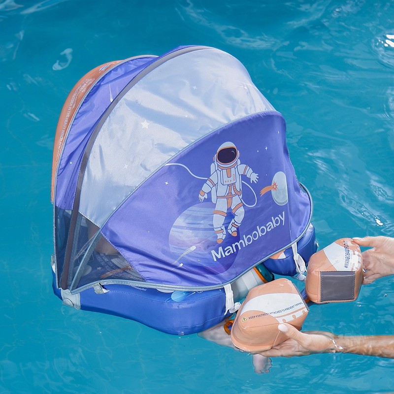 HECCEI Mambobaby Astronaut Baby Float with Sun Canopy - Non-Inflatable, 360 Protection, 3 Swim Ways, 3-24 Months