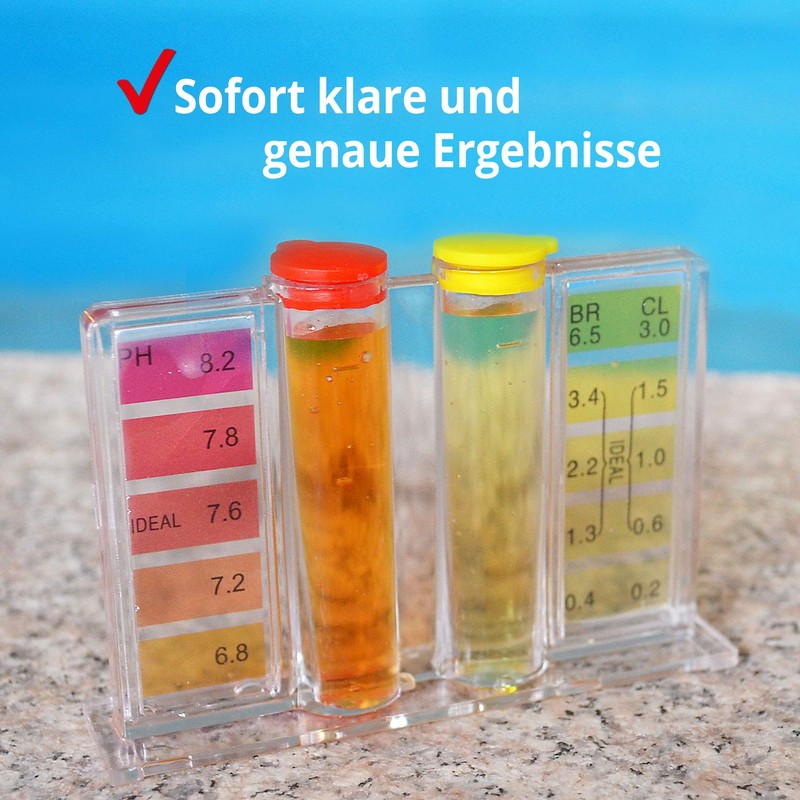 - Special starter offer – with the professional Hecht pool water tester, you can measure the chlorine content and pH value. You get an exact water value that allows you to respond appropriately with your care accessories or liquid chlorine.
