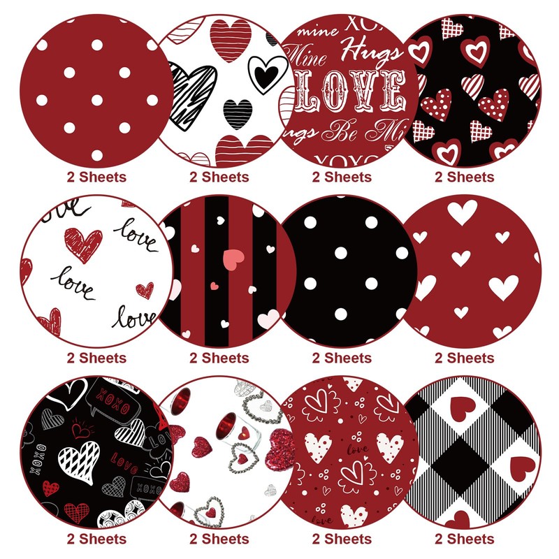 - Valentine's Day theme design: The main colors of valentine decorative paper are red, black and white. The whole set of designs uses classic Valentine's Day elements such as various hearts, spots, stripes, buffalo plaid, love text, etc. The reasonable combination of colors and patterns makes each of our valentines paper very beautiful. It's perfect for adding a sweet atmosphere to Valentine's Day.