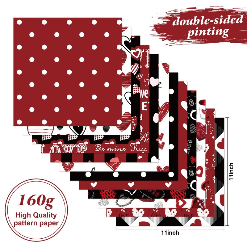 - igh quality: Valentine crafts paper is made of high quality paper, which is of medium thickness, easy to fold and cut and does not tear easily. The size of the Valentine cardstock is 11*11 inches, Its big enough for you to use for large size DIY projects.