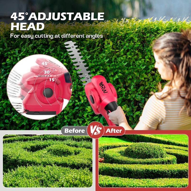 VARAI Cordless Hedge Trimmer, 2-in-1 Hedge Trimmer, Ultra Long Battery Life with Battery*2, high-Power and high-Capacity Grass Trimmer for Gardens, Yards and lawns, Including Charger