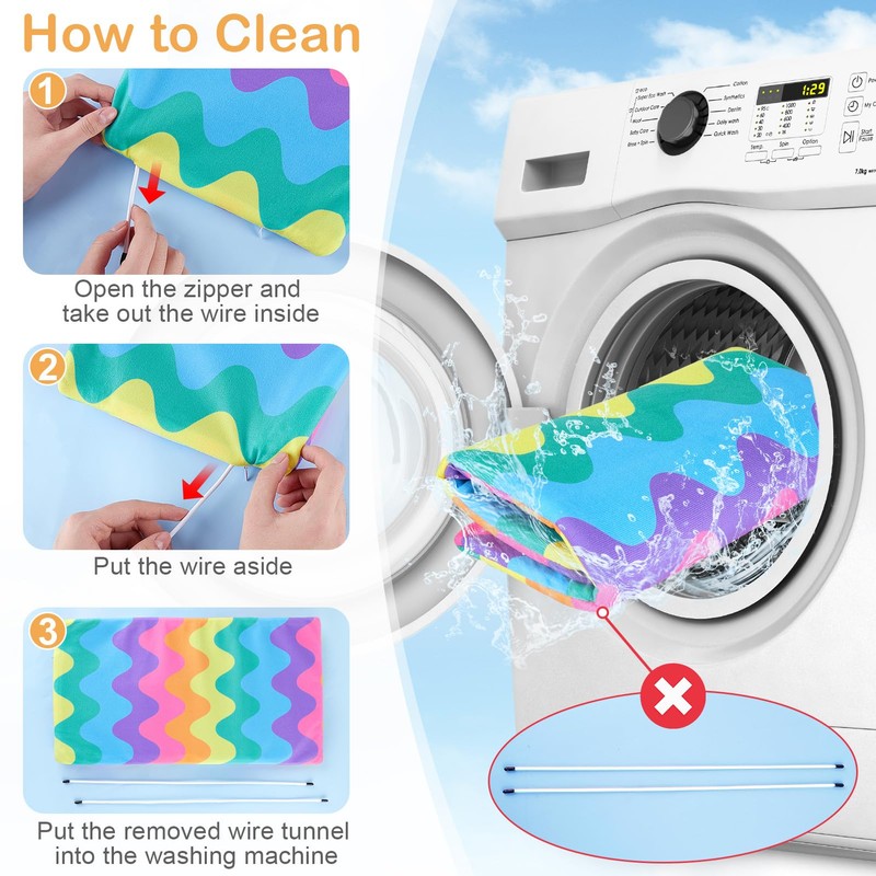 Hedgeink Guinea Pig Tunnel Rabbit Tunnels and Hides Rabbit Hideaway, Washable Guinea Pig House Toys Accessories Hamster House for Chinchilla Ferret Bunny Small Animals, Rainbow Wave