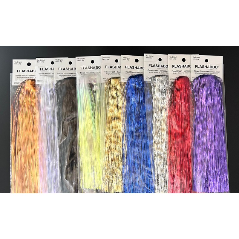 - Flashabou is the original metallic tinsel flash for fly tying and lure making. Made of soft mylar strands, Flashabou has brilliant light-reflecting properties and a lifelike movement in the water. Flashabou is one of the best materials for tying salmon, steelhead, pike, and saltwater flies as well as jigs, spinnerbaits, and bucktails. The fish love this stuff!