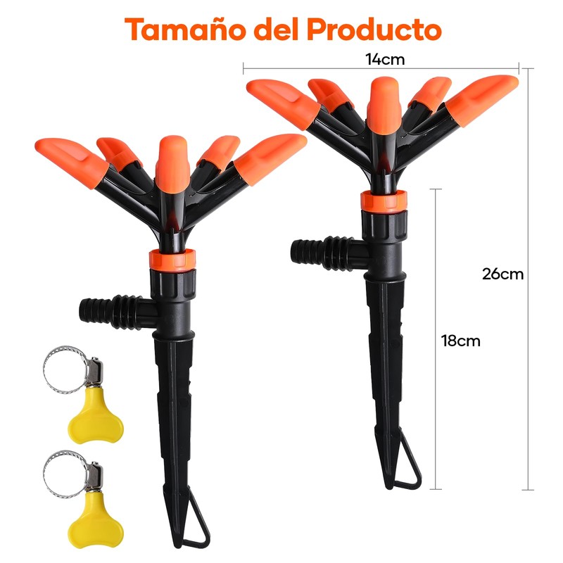 - Fácil de Usar: No requiere herramientas; basta con insertarlo en el suelo o césped para usarlo. Incluye un soporte para manguera de agua para garantizar un uso estable.